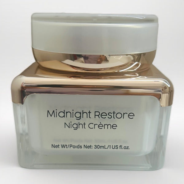Overnight repair cream designed to smooth wrinkles and renew skin.