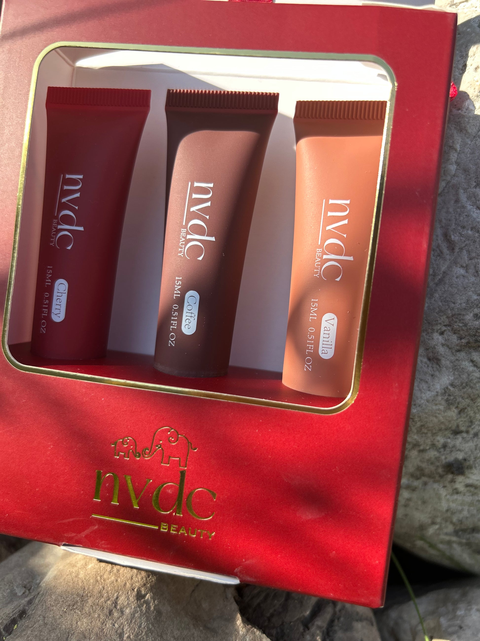 Treat yourself with gift for the loved ones the Perfect Pout Vegan Lip Balm Trio Set and experience the ultimate in lip care with a touch of everyday luxury!